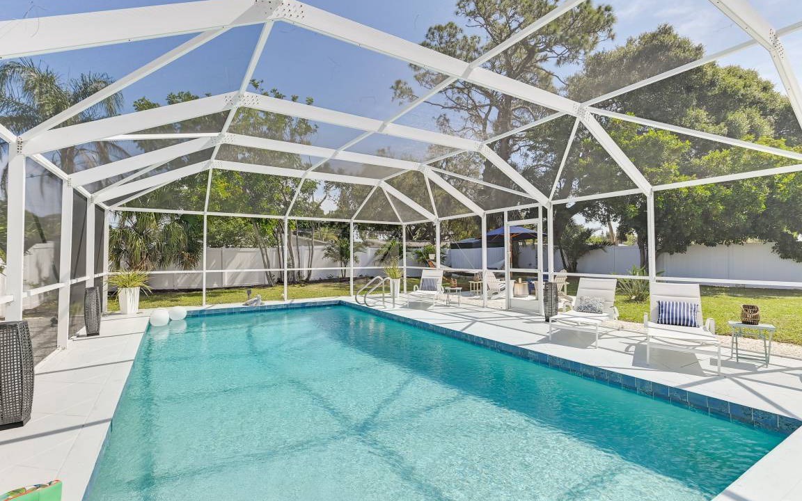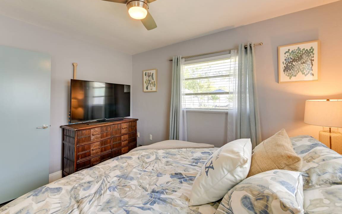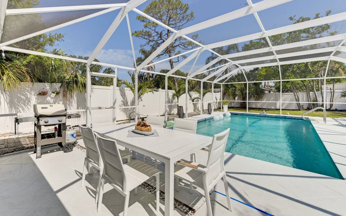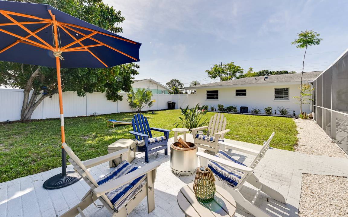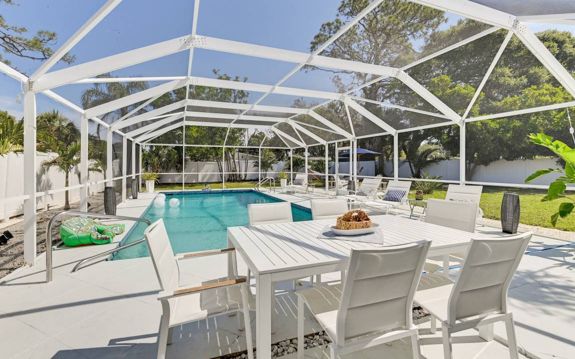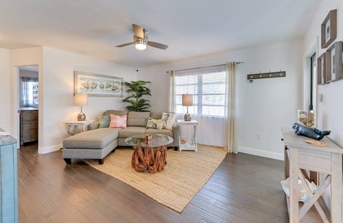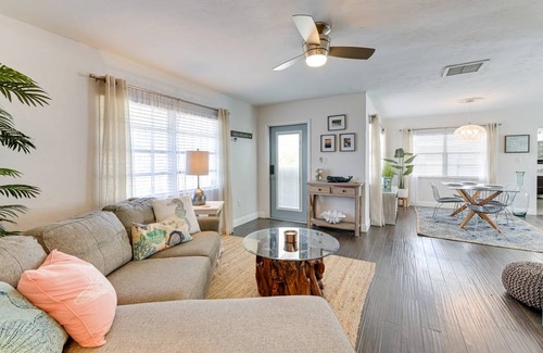 Spend your next Gulf Coast getaway in style and comfort at his bright and beachy Sarasota vacation rental. You're just 3 miles from the famous white sands of Siesta Key Beach at this 2-bedroom, 2-bathroom home, but you might not want to leave the property! Lay out under the Florida sun by the outdoor pool on the screened lanai, ride bikes to the coast for a beach day or a parasailing adventure, then play some cornhole and enjoy the balmy night air by the backyard fire pit.