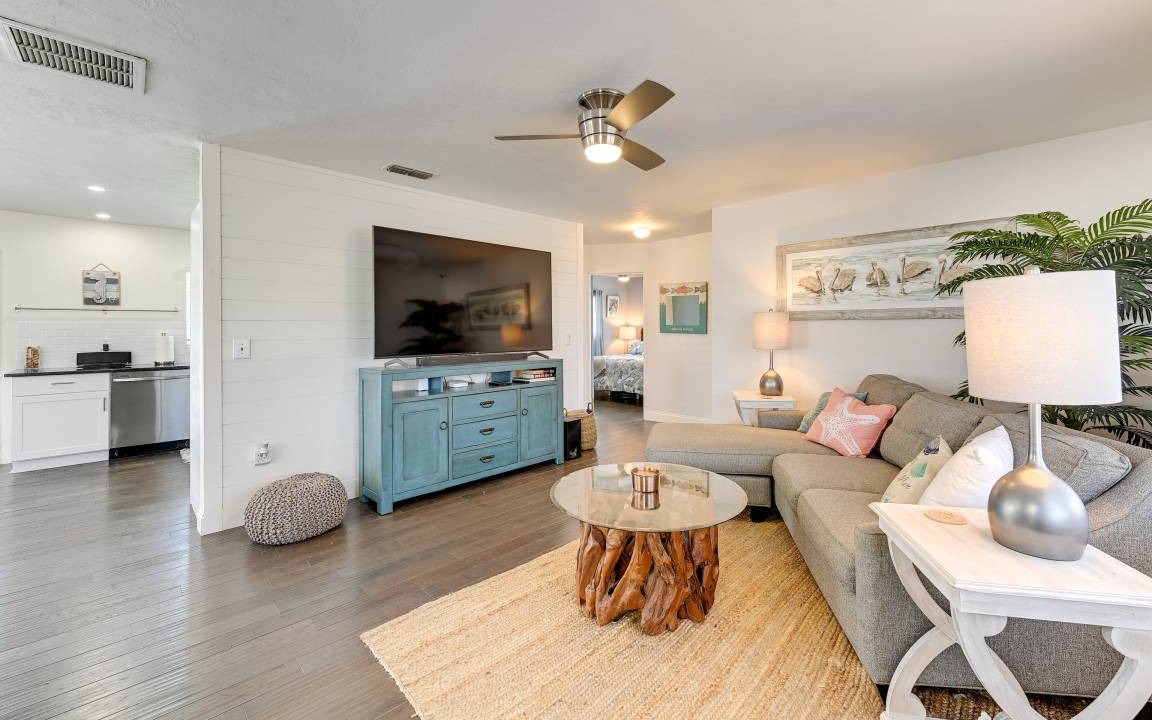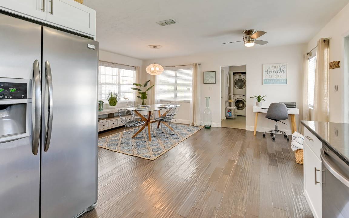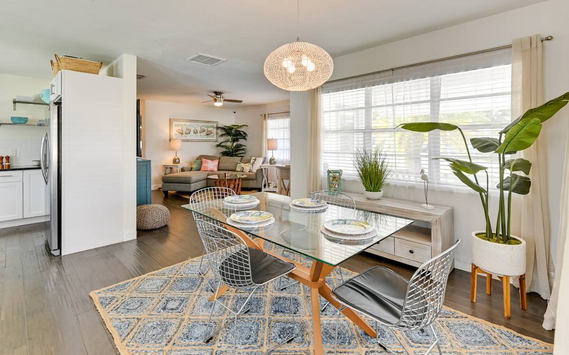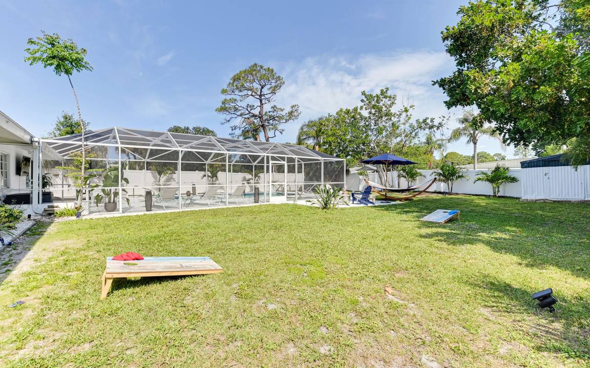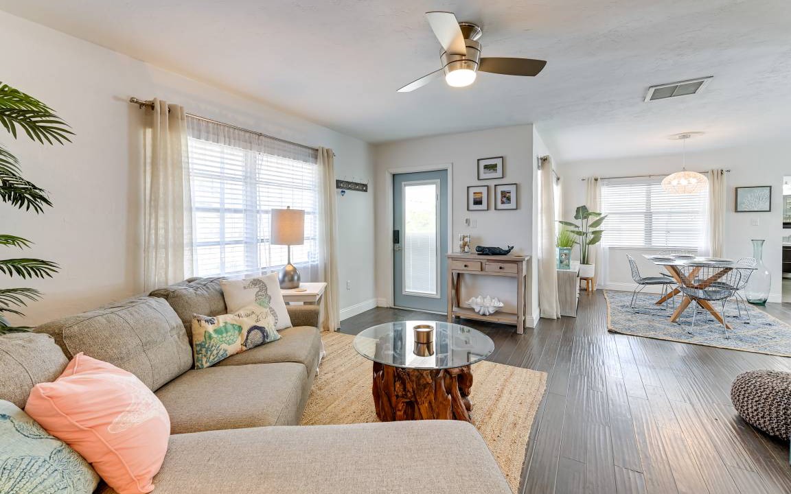 Spend your next Gulf Coast getaway in style and comfort at his bright and beachy Sarasota vacation rental. You're just 3 miles from the famous white sands of Siesta Key Beach at this 2-bedroom, 2-bathroom home, but you might not want to leave the property! Lay out under the Florida sun by the outdoor pool on the screened lanai, ride bikes to the coast for a beach day or a parasailing adventure, then play some cornhole and enjoy the balmy night air by the backyard fire pit.
