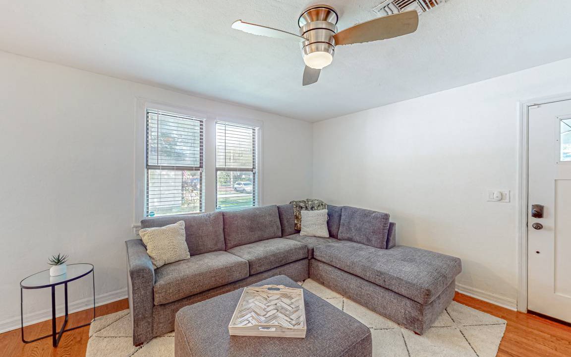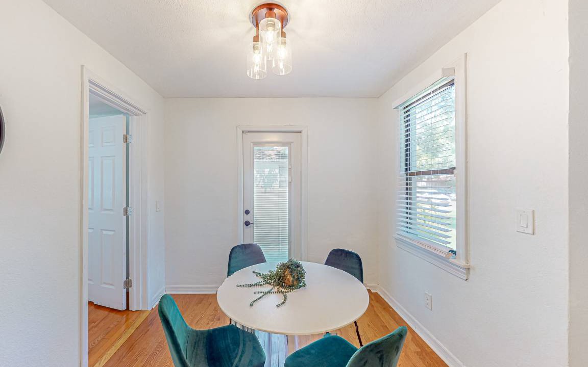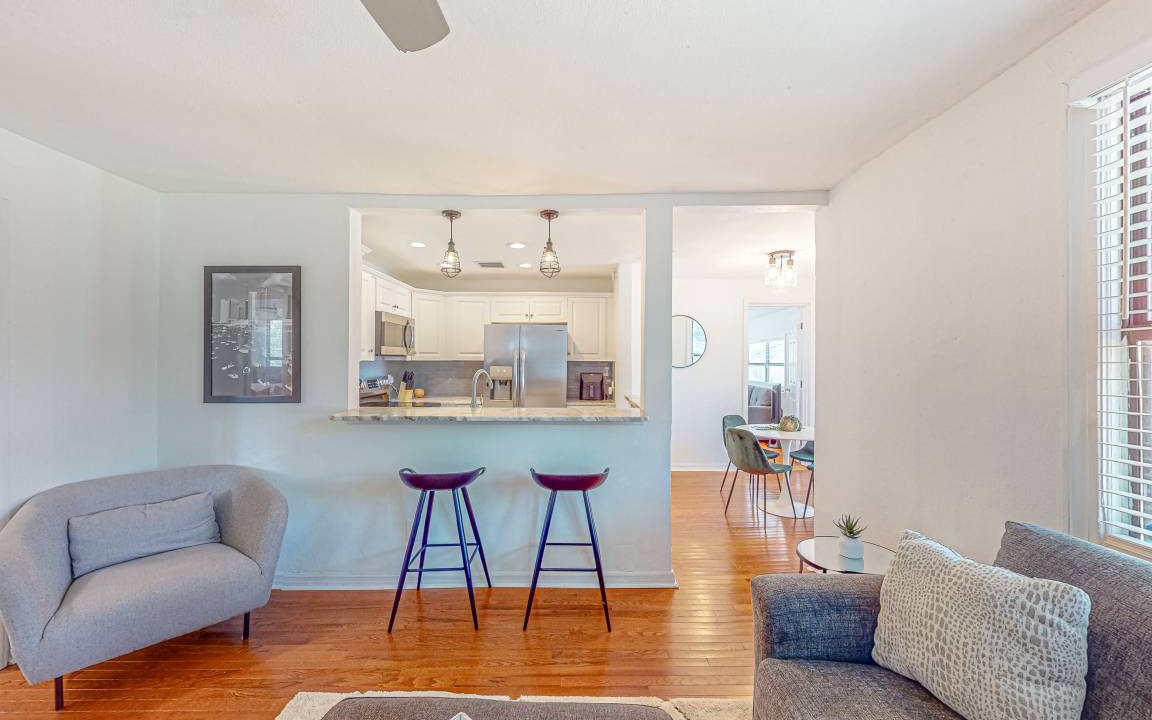 Step through the front door and into a classic retreat with a warm and inviting front living area, a well-equipped, full kitchen with a breakfast bar and stainless steel appliances, and an adjacent dining area with a table for meals or game nights.