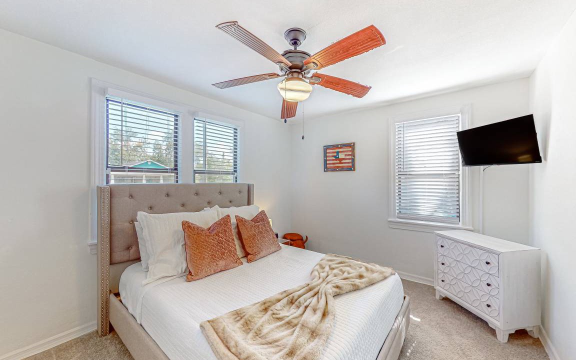 Out back, fire up the gas grill to spice up your home-cooked menu and dine alfresco on your furnished deck and then gather around the firepit in your large, fenced yard to roast s'mores, share stories, and watch the stars come out.