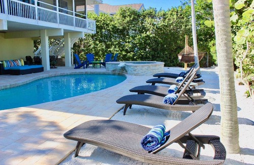 THE BEACH HOUSE ~~ Sirenia Cove is located between 2 beaches right on the waterfront, directly beside our other luxury 4 bedroom property Sirenia Beach House. The deep water canal is at your back door to enjoy fishing on the large dock or boating to a deserted island. Our property hosts a large dock with direct access to Bimini Bay & the Gulf of Mexico.
