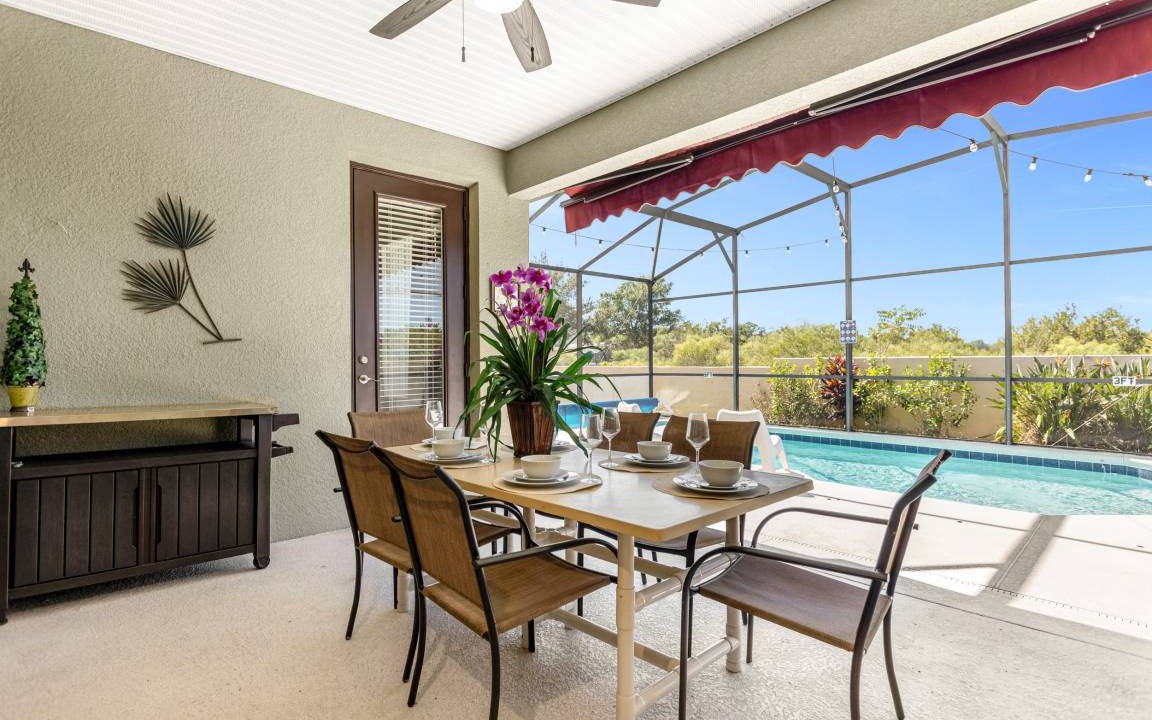 The home itself features a sun drenched back deck with its own private swimming pool. No rear facing neighbors, gives you added privacy plus a garden view. Soak up the Florida sunshine from one of the lounge chairs, or have a snooze in the shade under the umbrella. There's also a poolside dining area, and even an outdoor BBQ grill. When the sun glare gets too intense, the retractable shade and outdoor fan will come in handy!