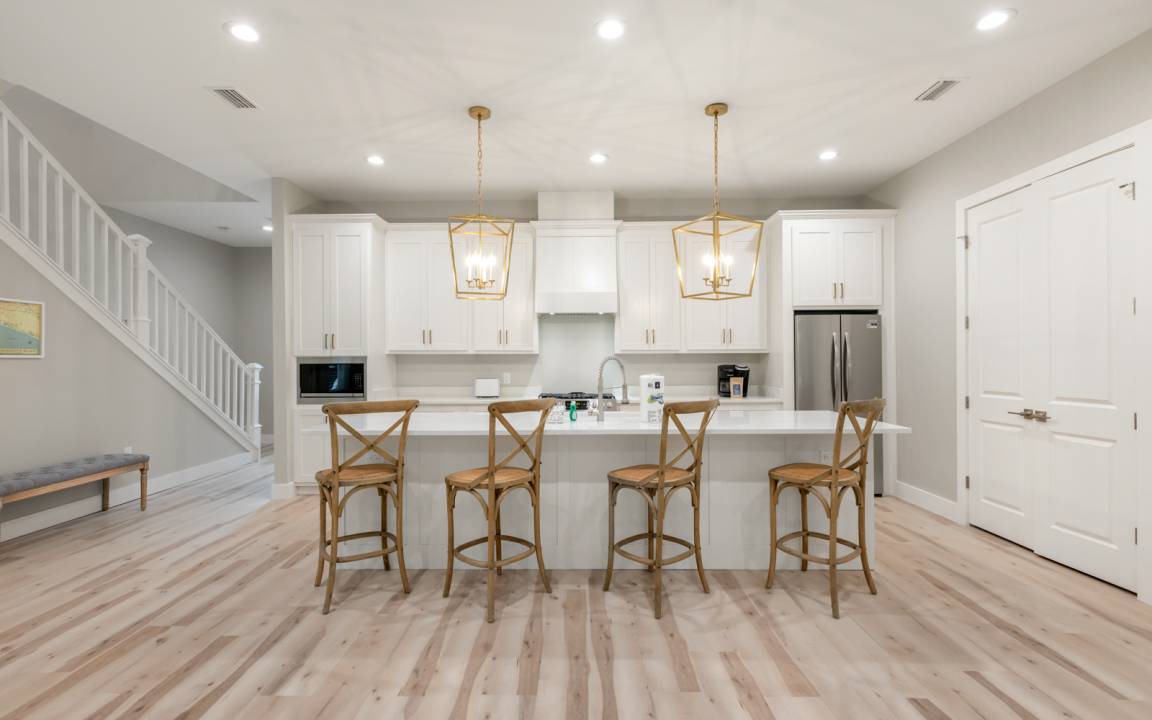 Recently built in late 2023, this 4-bedroom haven features luxurious hardwood flooring throughout and amenities like a built-in gas grill on the adorable back porch, a six-seater golf cart, private heated pool, and four bicycles for local exploration.