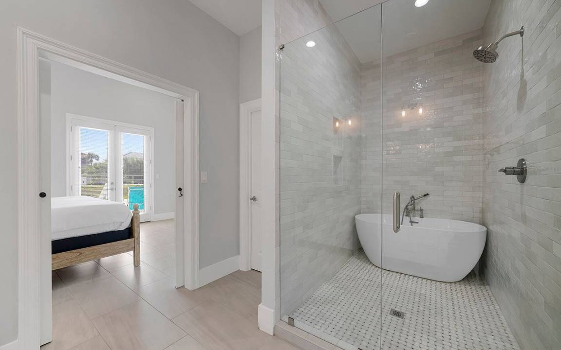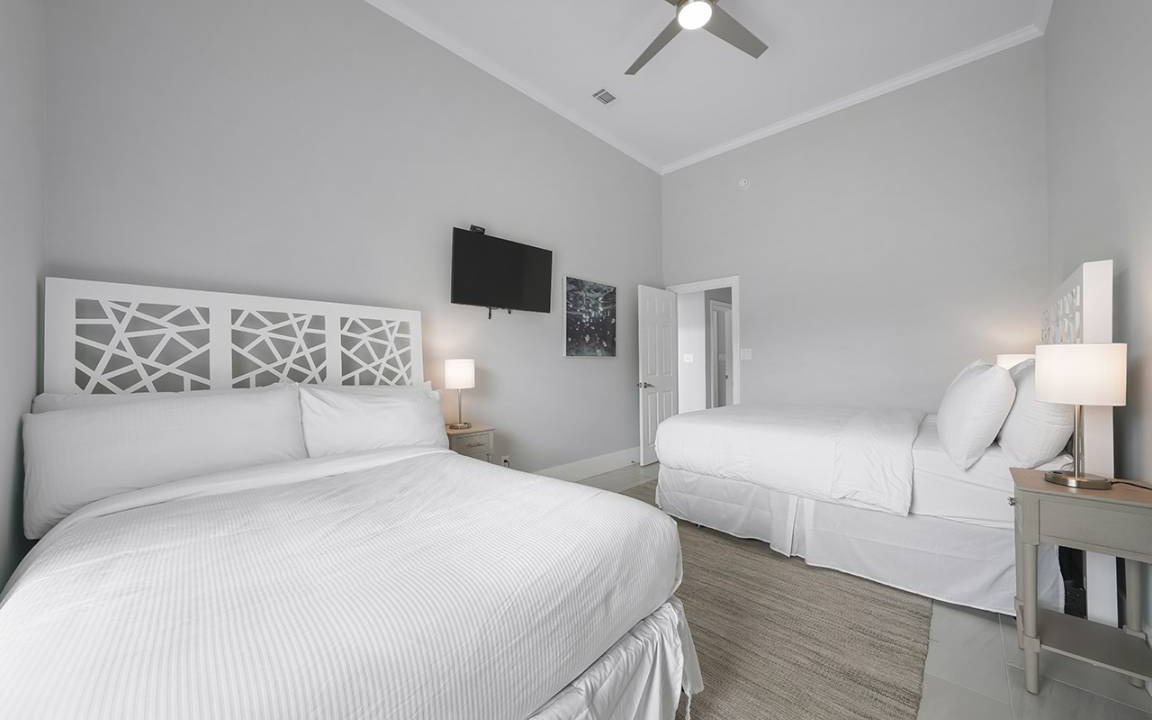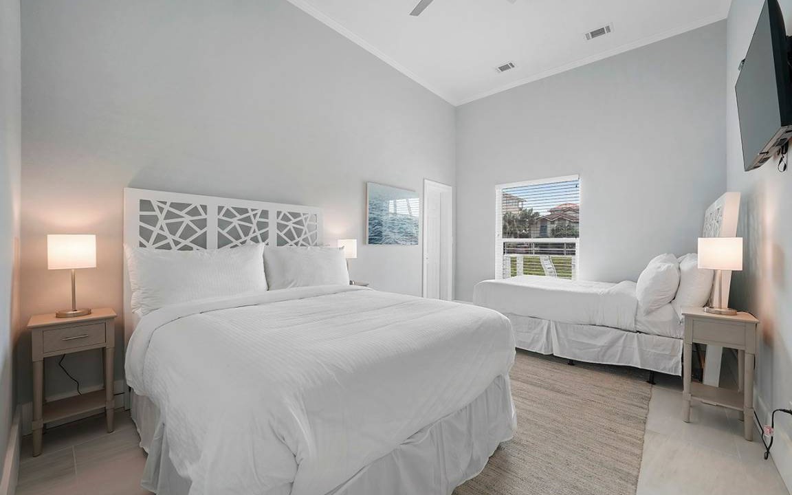 The private pool of Coral Shores features a Baja shelf and Gulf views from the privacy of your own outdoor oasis. The home is just a one-minute walk to the beach and the community also features a public pool that guests are welcomed to visit. You are greeted to the home by a large foyer from which three bedrooms are accessible. The lavish first-floor Master Suite features a King bed, a flat-screen TV, and private porch access. The first floor Master Bath has a stand-alone shower, a separate tub, and dual sinks. The first floor King Suite is complete with a flat-screen TV, and private porch access through French doors. The final first-floor bedroom features two queen beds, a flat-screen TV, and a walk-in closet. The private poolside porch boasts Gulf views and outdoor seating. A full bath with standalone shower rounds out the first-floor space. In addition, Coral Shores parks a total of four vehicles. Both sides of the garage are accessible to guests and fit one vehicle each. The driveway fits two more vehicles.