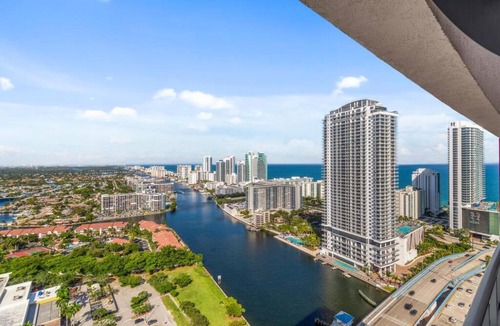 3308 Exclusive 2BR 2BTH Penthouse Water City View 2 story balcony Modern Kitchen Pool is located in Hallandale Beach.