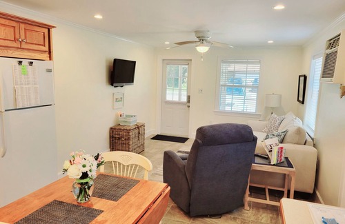 Apprx 510 sq ft of indoor living space with private back patio and screened in front lanai. Double doors separate the Kitchen and Living Rooms from the Bedroom and Bathroom. PRIVATE back yard patio. A partition separates THE BUNGALOW patio from THE COZY patio. Includes: PRIVATE patio w/chairs/table/shade umbrella, propane grill/propane included 2 beach chairs and beach umbrella, small cooler, queen bed in bedroom, all linens ,2 flat screen TV's, Xfinity Internet , DISH satellite TV (living rm)SMART TV in bedroom, Washer/Dryer, fully appointed kitchen (No Dishwasher) including microwave, Kcup and Auto drip coffee makers, fridge, stove and cooking utensils and a variety of spices.