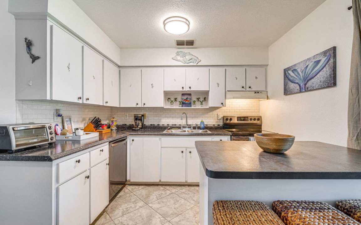 KITCHEN: Refrigerator, drip coffee maker, stove/oven, microwave, dishwasher, toaster oven, kitchen island, dishware & flatware, cooking basics