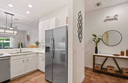 This unit is being completely renovated and all is brand new, from appliances to mattresses. It is in ground floor (no levators in this resort) and fully equipped with all the needs and more.Free WIFI and call to Northamerica. Kitchen has everything to prepare full meals or snacks to take to the parks, we also provide a cooler and bottles to take to the parks. It has a regular coffeee maker and a Keurig if it's of your prefernce. The dining/living room area features a 65" smart TV, and has a balcony with a nice view to the park and one of the pools which is a few steps away from the unit. The Master bedroom has a king size bed, and a second balcony to enjoy a coffee or beer after a long day. The master bathroom has a bath tub and a closet full of extra linens. The second bedroom has a queen size bed and there are Tvs in each room.The MARVEL room, has 2 twin beds and it is awesomely designed with an Avengers theme.Both rooms share a full bathroom with shower. There is a washer and dryer inside the condo and iron and ironing board. There is a lot to do in the resort and the grill is right accross this unit. We provide, volley and basket balls, beach paddles, toddler toys, board games, and a lot more. Bahama Bay is only minutes away from the parks, shoppings, and restaurants or you can grab the umbrella and beach chairs and spend the day at one of the beautufil beaches of the Gulf of Mexico. If you come with babies, we provide high chair, pack and play, and stroller and also baby dinnerware and utensils. This is the perfect place to spend your vacations!!