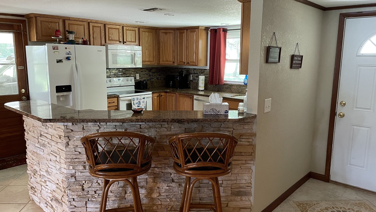 You will feel the old Florida charm in this newly remodeled 3/2 home with tin roof. Wait until you see the large kitchen with new maple cabinets, tile floor, and beautiful granite counter tops. Kitchen has dishwasher, microwave, refrigerator with ice maker and range.