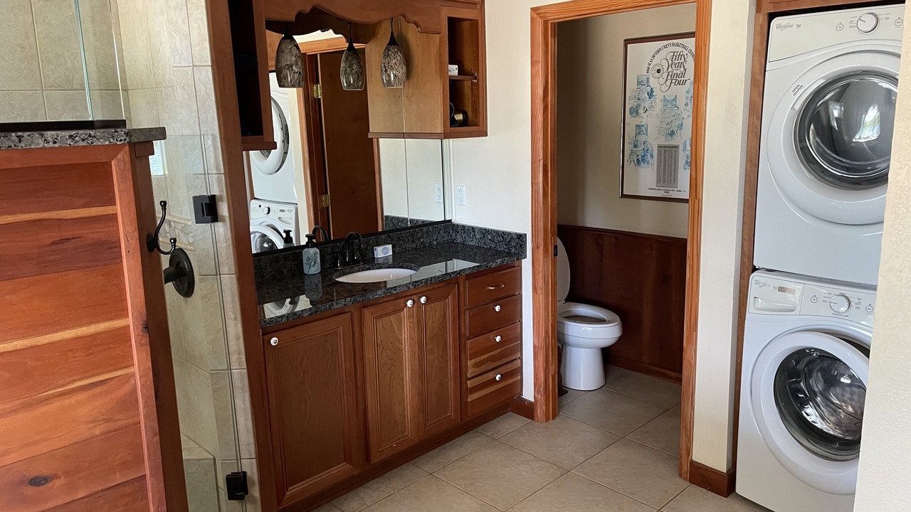 The second bedroom has a queen size bed. The third bedroom has two twin beds. Guest bathroom has a large tile shower, bench seat and a handrail. The 60' granite vanity top provides plenty of space for all of your personal belongings.