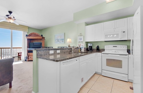Celadon 703 is a beautifully decorated one bedroom + bunkroom, two bath condo. With the floor to ceiling windows and sliding glass doors, you'll have excellent views of the stunning gulf from your gulf front living room. This open floorplan allows you to take in the shimmering waters from your kitchen and dining area as well. Relax and enjoy your favorite beverage on your fabulous private balcony, taking in the view of the white sand beach as you watch the wave’s crash against the shore. With a King size bed in the master, bunks in the hallway, and a pull sofa in the living room, this condo sleeps up to 6 guests comfortably! Celadon Beach Resort also features amenities such as an indoor and outdoor heated pools with sundeck, a kiddie wading pool, hot tub, fitness center, tennis court, grill area, covered picnic area and moving screening room! Come check out why Celadon 703 is a family favorite!