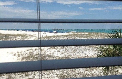We are so excited to offer our beach home to you! This jewel is located in the fabulous Holiday Isle community in a gated, friendly 30 unit complex. Our home is on the end unit of the second floor. The three living room windows overlook the beach, giving you a spectacular view of the sugary white sand, the grassy dunes, the East Pass, the Jetties and the Gulf...all in one glance! The balcony overlooks the beautiful pool on one side and the spectacular beach on the other. Walk out the front door and you are at the stairway to the beach! A three minute walk through the soft warm sand and your toes will be in the clear water that the Emerald Coast is famous for! No roads to cross! If you love snorkeling or fishing, some of the best around is right outside your door. From the front of the complex, the harbor is just across the street. You can't get any closer to paradise!! Holiday Isle also offers several miles of sidewalks for your morning walks.