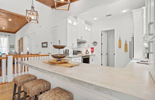 Elm by the Sea is a beautifully remodeled coastal charmer. Includes both the main house and guest house, 8 bedrooms + 6 1/2 baths. Master bath remodeled March 2024. Two full kitchens. A private heated pool with hot tub, firepit, grill and ping pong are rivaled only by the turquoise water of nearby Seagrove beach. A 6 person golf cart is available for rental and at least ten beach cruisers. A quick jaunt down 30a takes you to the Seaside town center with all its wonderful food trucks or enjoy the easy beach access just down the street (San Juan).