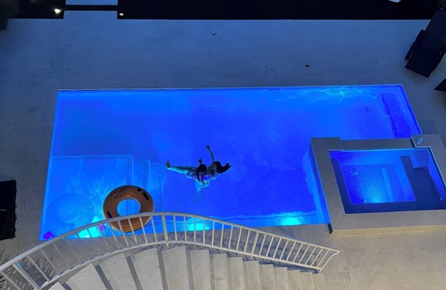 The outdoor pool area provides both open and covered seating, with a heated pool and a chiller for those hot days when the water temperature rises. The BBQ area has a fridge,freezer and a 130 lbs ice maker with a dinner table for 8 and a counter that seat 4.This home can comfortably accommodate up to 8 guests with 3 bedrooms and 4 baths.
