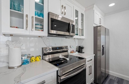 Experience breathtaking waterfront views from your private balcony at Sailport Waterfront Suites, Tampa. This stunning 1BR/1BA condo is beautifully renovated and offers direct water views, providing the perfect balance of relaxation and adventure for you and your group. Enjoy easy access to exciting local attractions while indulging in the peace and tranquility of this desirable location. With an array of amenities, your stay is sure to be comfortable and memorable.