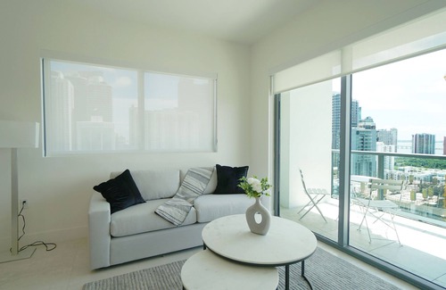 Come stay at this comfortable NEW full equipped 1 bedroom 1 bathroom apartment with a queen size bed and sofa bed. Amazing city and ocean view from the balcony, curtains & black outs for better sleep, washer & dryer, Smart TV's in the bedroom and living room, access to all in the heart of Brickell area of Miami. Brickell is in the top destination in Miami with restaurants, shops and awesome day and nightlife. Enjoy a stylish experience at this centrally-located place.