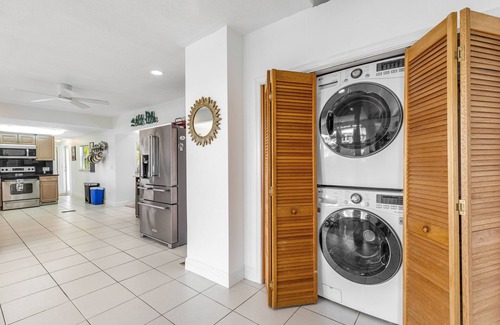 The Keys are calling, so spoil yourself with an unforgettable stay in this fantastic canal front home! You won't have to leave home base to soak up some of the best views, as the calm canal waters await right outside as well as a 122-foot private dock to tie up any kayaks and toys. The exterior is a fun bright green color just adding to the coastal vibe of this retreat, yet as soon as you step inside, the interior boasts clean white walls, fun beachy decor, and comfortable furnishings. With such an airy layout, you can definitely entertain the whole gang as some kick back in the living room for a movie, some show off their skills in the fully equipped kitchen, and some reminisce at the breakfast bar or dining table. Plus, there is no better place to watch the sun go down than the upper deck that looks out to the canal and sound beyond!