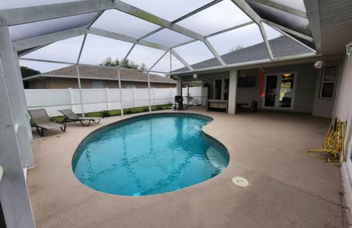 Escape to our luxe pool villa in picturesque Parrish. This excellent vacation rental offers a perfect retreat for guests seeking relaxation and comfort. With 3 bedrooms, including a king bed, 2 queen beds, and a bunk bed, there's plenty of space for everyone. The villa features luxe pool with covered lanai, 3 bathrooms, complete with amenities like a hair dryer, bathtub, and shower. There are white sandy beaches just a short drive away. Enjoy the fantastic amenities such as heating, AC, WiFi, and a washing machine. Immerse yourself in the serene surroundings and create lasting memories. We look forward to hosting you at our place.