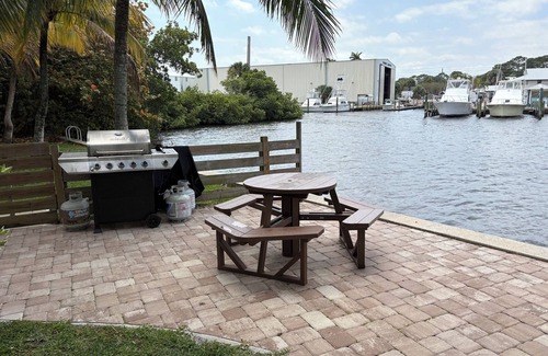 Consider this yacht your home away from home while you visit Stuart. This superb vessel offers a cozy bedroom with 1 bunk bed, a private bathroom with a shower and hair dryer, and essential amenities like AC, WiFi, full kitchen and ice maker and a vending washing machine in the building next to the heated pool with hot tub jets. Short walk to downtown and can cut across the newboardwalk by the civic center to all the restaurants and shopping in Port Salerno. Free parking on site. Free boat launch and parking within walking distance. All boats and trailers must park at the ramp and you have 24 hour access to the boat ramp. Enjoy the phenomenal experience of living on the water and exploring the beauty of Port Salerno. There are two rooms with full bathrooms and each room is usually rented or I could be on site. Large living room with tv and dining table and bar stools. Grill on site.The bunk room is on the left hand side in the hallway with an attached full bathroom.Four kayaks and a paddle board on site for guest to use. Outdoor seating by the pool. The yacht faces the waterfront district and there is live music daily and you may sit on the front of the yacht facing the waterfront and there is two large bean bags. Lots of wildlife and the yacht is in the Manatee pocket of Port Salerno. Many beautiful beaches less than five miles away. To keep price down I require guest to leave the restrooms clean and wiped down and wash sheets and towels and dry and put back on the bed. Kitchen clean and all surfaces. Almost 99 percent like this and have had one pay the $100.00 fee. Have not had an issue due to check out is at 10 but allow noon and guests can relax by the pool as well. There is a washer and dryer in the building and takes cycle pay and one takes quarters and wash is 2.00 dryer about a 1.00 and has a quick wash.