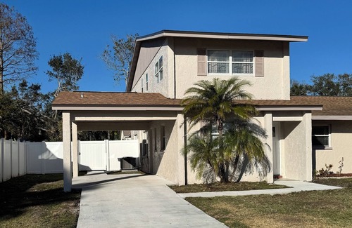 Welcome to our newly renovated place to stay! It is only a short drive to the beach and to all Tampa Bay Attractions! Step inside, and you will be captivated by a modern tropical charm with an open-concept design. The two bedrooms have queen beds, and you can enjoy the convenience of en-suite bathrooms. Step outside to a fenced backyard with gas grill.