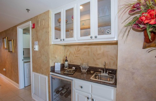 The amenities in this beach front condo include three bedrooms, each with a private bath. The Master suite has a King bed, dressing room, stall shower and jetted tub. Guest room #2 has a King bed with private bath, tub and shower and Guest room #3 has two Queen beds with private bath, tub and shower. All rooms have cable TV and DVD players. The new sofa has a chaise and will sleep an adult or two children. There is free wifi in the unit. There is a large balcony that faces Southwest and most of the year you are able to enjoy sunset from the balcony.
