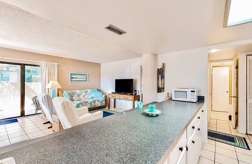 At your condo, a private covered patio provides the perfect spot to sip a crisp drink after a fun-filled day in the sun. Inside, the living area offers even more social space with ample seating and a TV. Find everything you need in the fully equipped kitchen, then sit down to home-cooked meals in the dining area or kitchen bar.