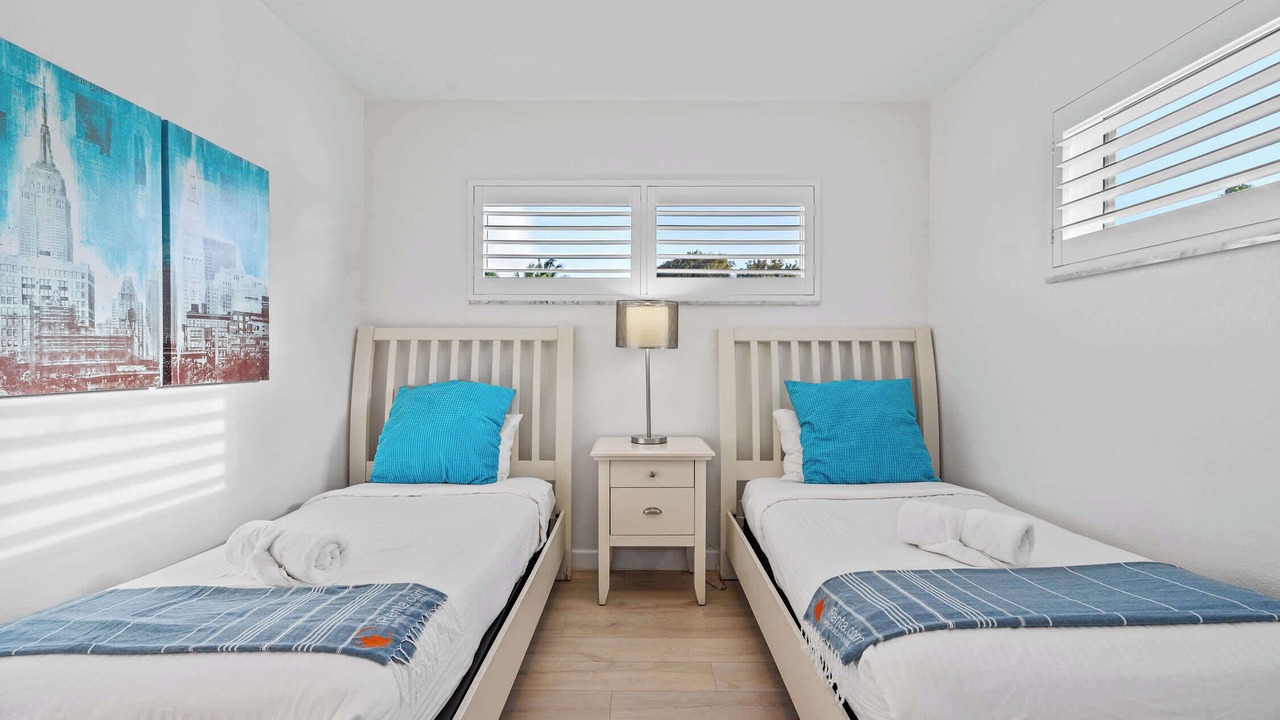 The master suite is as indulgent as you'd expect—complete with hardwood floors, a king-size bed, a flatscreen TV, and a private en-suite bathroom. The second bedroom also offers a king-size bed and TV, while the third and fourth bedrooms each feature two twin beds and plenty of natural light—perfect for kids or extra guests.