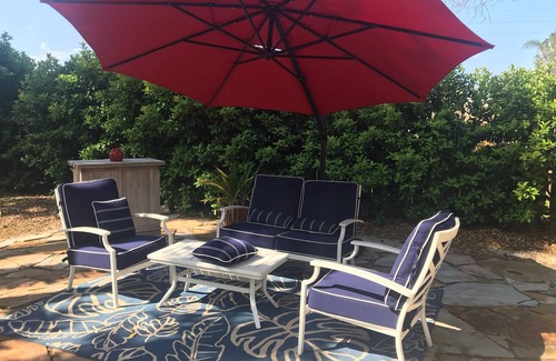 Feed the turtles and Koi in the Koi pond. Take a dip in the lagoon pool (not heated) or just relax on the hammock under the tiki hut. Landscape lights on at night create a romantic setting for couples. "About the cottage", dine in style inside or out, upscale Bohemian furnishings combine with eclectic original artwork set the stage for a truly awesome holiday experience. You will be hooked and be back like so many of our guests, again and again.