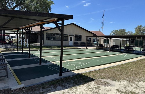 Escape to this delightful 1-bedroom home in Zephyrhills, sleeps 4. Relax with 2 pools, hot tub, pool tables, pickleball courts, shuffleboard, horseshoes, volleyball, fitness room, free wifi.