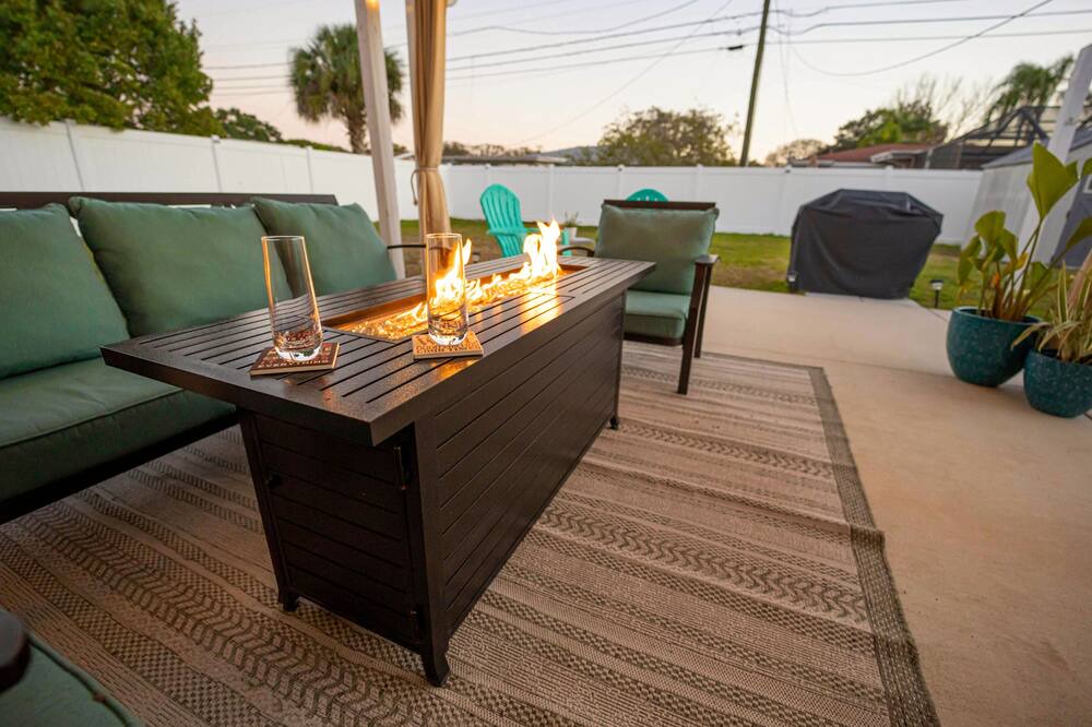 Patio with cozy outdoor couches and firepit (very relaxing at night when lit)