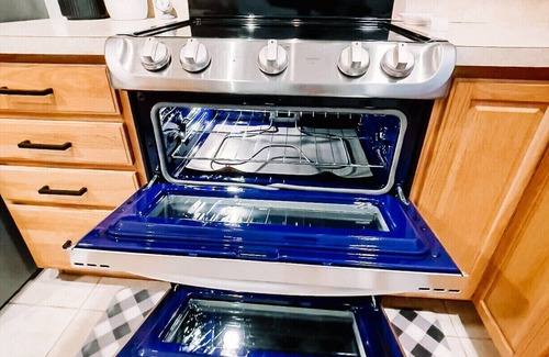 Our kitchen is furnished with new granite counter tops, stainless appliances, double oven, pots, pans, utensils, blender, and more for cooking any of your favorite dishes.