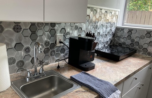 This is a Cozy Studio with a private entrence through the side on a residential house it has a separate bedroom with a king size bed and separate kitchenet area with a sleeping sofa futon !!!!! Could sleep 3 adults or 2 adults and two children. Located in a safe and stablish neighborhood. Fully equip kitchen with all the amenities guest needs to fill like home away and to cook their meals and breakfast , plus the host is next door and if the guest forgot to bring something!!!!!!! !!!!we got it!!!!!! just let us know , We like you to feel like you are at home . We care for our guest , Just bring your bags and relax .