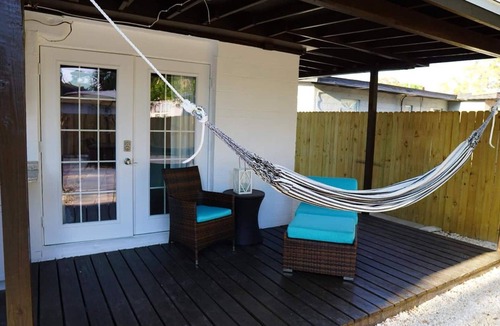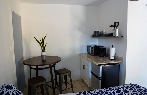 Recently remodeled with modern cozy touches. Completely independent Studio with private entrance to come and go as you please. Free private parking in driveway. Equipped with fridge, microwave, and coffee maker. smart TV! Our studio is within a centrally located residential neighborhood in the heart of tampa. An Uber ride away from all tourist attractions, famous restaurants and night life is just a couple blocks away. Safe to come and go at all hours. A 5 minute drive to the Airport, upscale shops of international Mall and most famous Restaurants in Tampa like Ocean Prime. Saint Pete Beach is a 20 minutes drive away! (Please let us know if you are heading to the beach we can lend you beach chairs and umbrella). 20 min away from Bush gardens. 10 min away downtown Tampa.