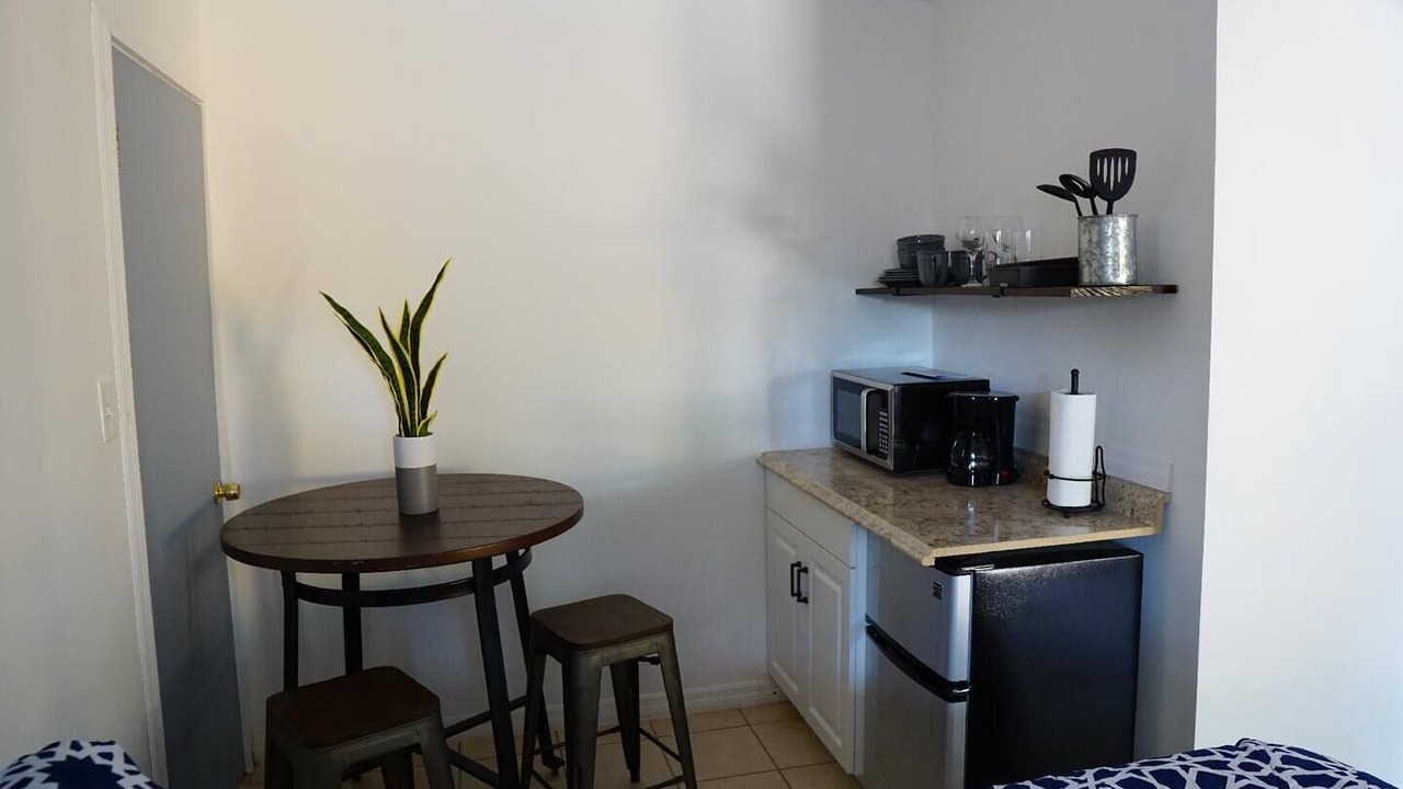 Recently remodeled with modern cozy touches. Completely independent Studio with private entrance to come and go as you please. Free private parking in driveway. Equipped with fridge, microwave, and coffee maker. smart TV! Our studio is within a centrally located residential neighborhood in the heart of tampa. An Uber ride away from all tourist attractions, famous restaurants and nightlife is just a couple blocks away. Safe to come and go at all hours. A 5 minute drive to the Airport, upscale shops of international Mall and most famous Restaurants in Tampa like Ocean Prime. Saint Pete Beach is a 20 minutes drive away! (Please let us know if you are heading to the beach we can lend you beach chairs and umbrella). 20 min away from Bush gardens. 10 min away downtown Tampa.