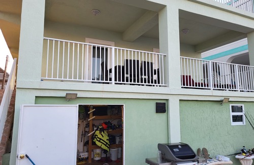 PATIO new gas BBQ, sink outside table let me know what your needs are, also Harris Park beach, kids play ground, great family get away with full water activities kids are welcomed, no pets, no cats, no dogs etc...NO PETS Allowed no exceptions. Has separate central air conditioning ceiling fans thru out has its own separate terrace again overlooking ocean ,front entrance under covered parking ,very private clean neighborhood new homes all around .Blue water private. THANK YOU !!!!!