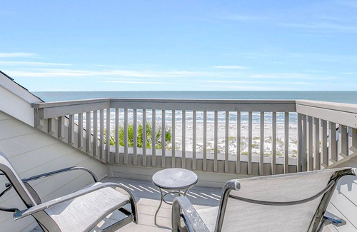 Situated right on the Gulf, this two-bed/two-and-a-half-bath townhome boasts sweeping views of the Indian Rocks Beach coastline. Take in the stunning vistas from the first-floor deck and the main balcony on the second floor. Or experience the surf and sand firsthand with private access to the beach. An open floor plan with stylish furnishings and high ceilings creates a welcoming vibe, while en-suite bathrooms for each bedroom add additional privacy. In a prime locale, your rental will have you within walking distance to an array of shops, restaurants, and activities.