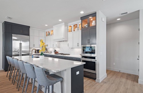 Kitchen: The fully equipped modern kitchen boasts stainless steel appliances, granite countertops, and all the essentials you need to prepare delicious meals. A cozy breakfast bar provides additional seating, perfect for quick snacks or casual dining.