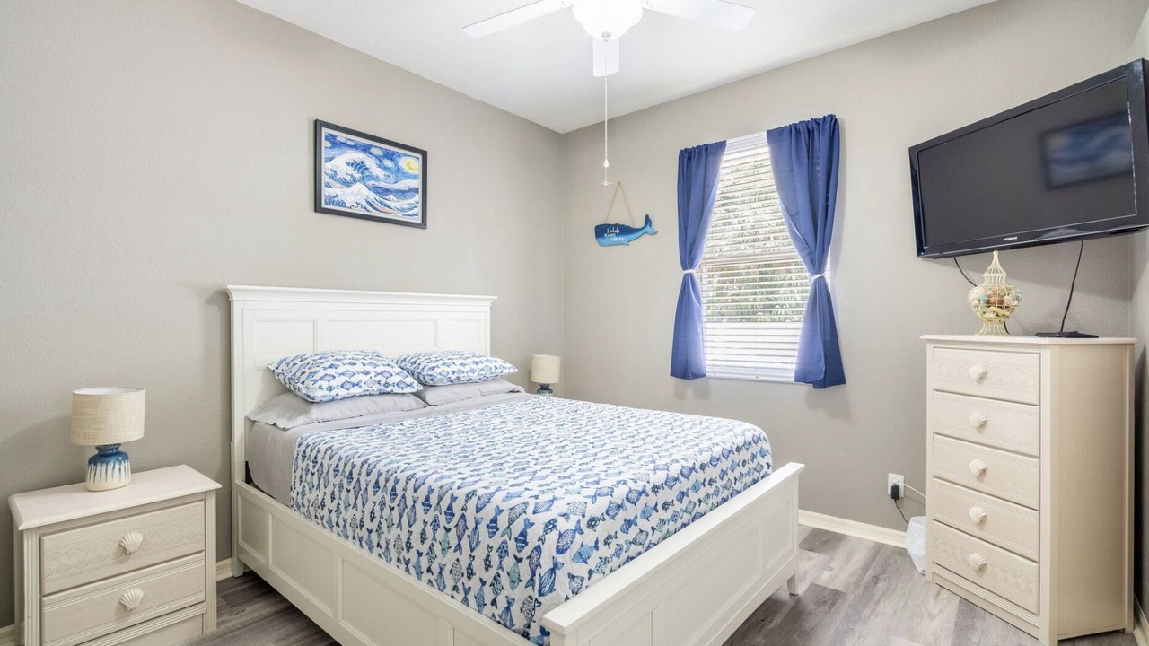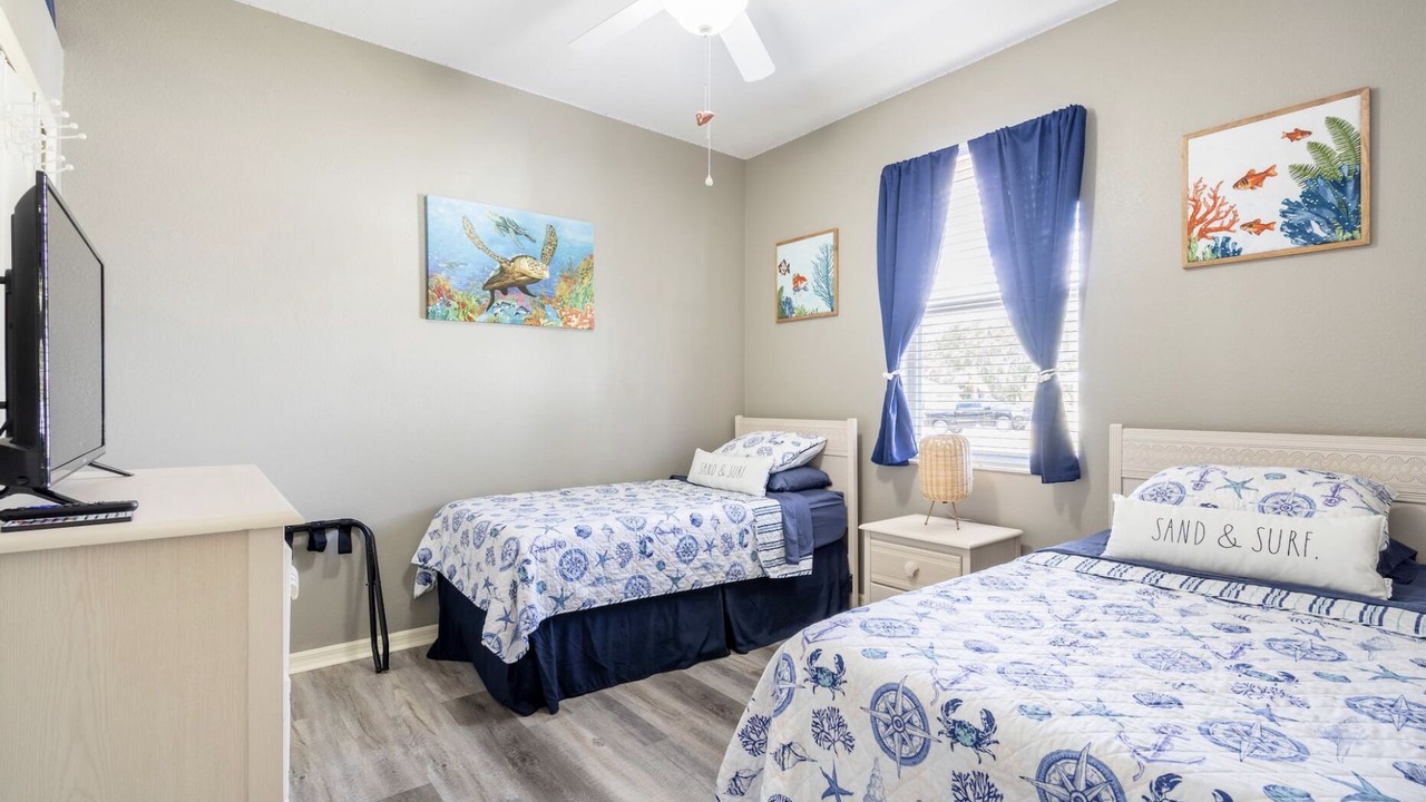The other side of the house hosts the two addition bedrooms. One queen bedroom and two twins in the other room. A second bathroom with tub/shower is situated between.