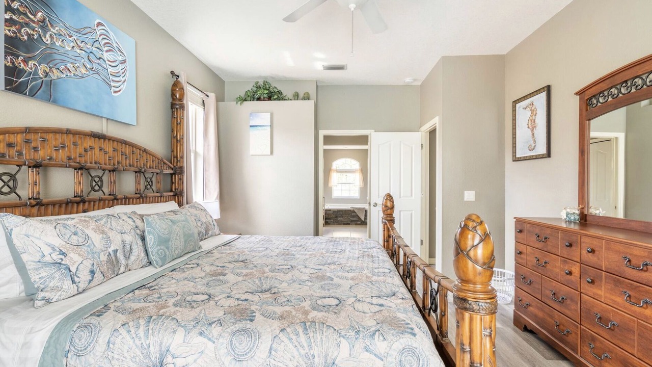 Master bedroom consists of a king sized bed, a huge ensuite bathroom with large closets and some big sliding doors to the pool deck.