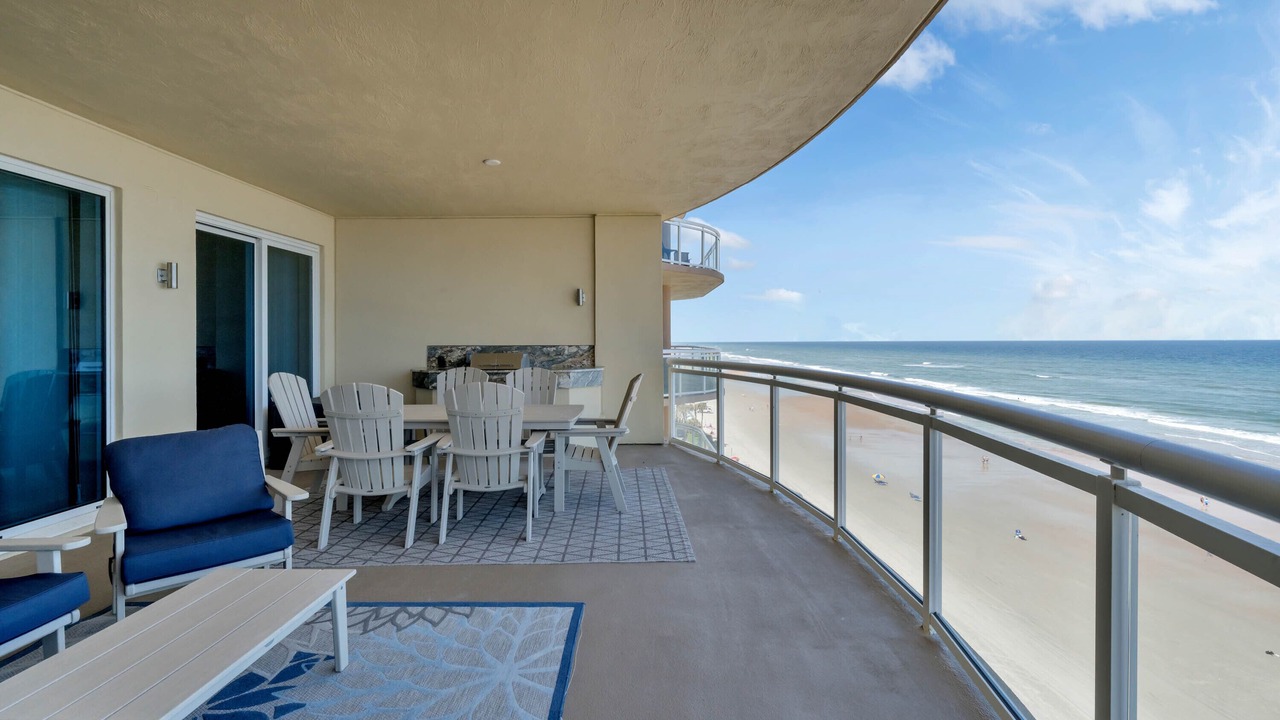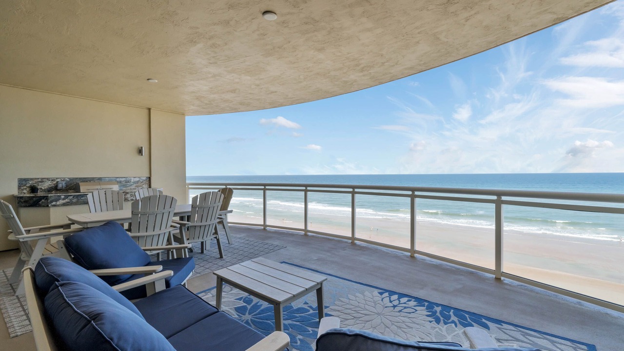 This 400+ sqft balcony has a multi-million dollar view of the ocean that is unmatched anywhere else along the coast. The balcony features an Kenyon electric outdoor grill with outdoor seating that overlooks the unobstructed views of the Atlantic ocean.