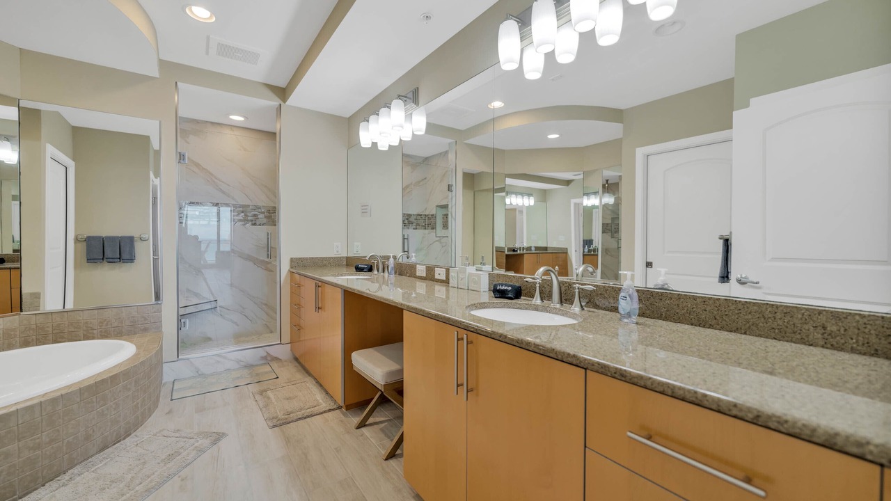 Ocean Vistas is like walking into a world class resort. The wide interior corridors lead to this luxurious 3 bedroom / 2.5 bathroom luxurious condo.