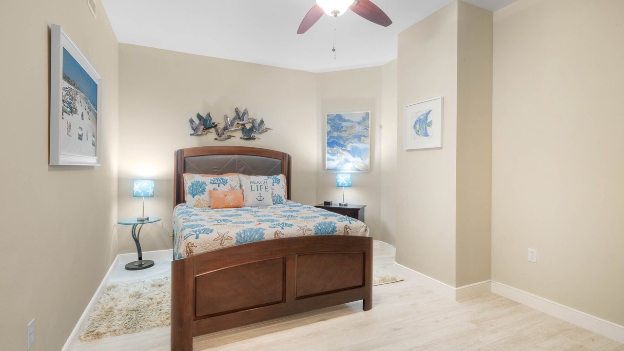 To your right will be the third bedroom that has a queen bed and a 55" smart tv with cable.