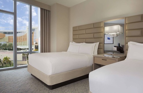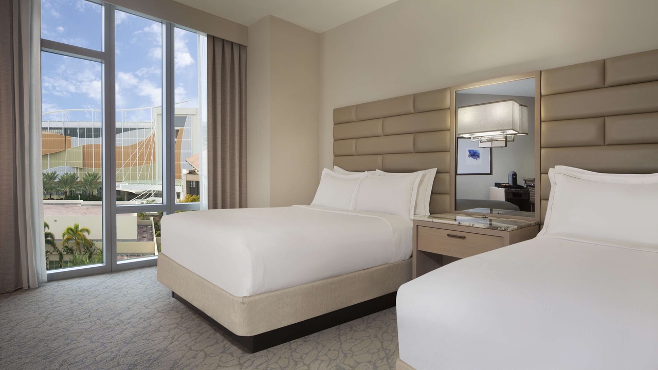 Hilton West Palm Beach offers 400 accommodations with safes and coffee/tea makers. Beds feature premium bedding. LCD televisions are featured in guestrooms. Bathrooms include bathtubs or showers.
