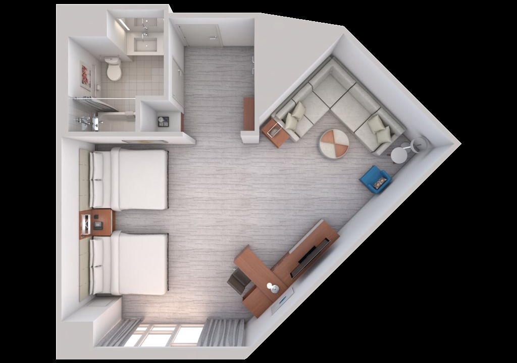 An outdoor pool and a hot tub are on site. Other recreational amenities include a 24-hour fitness center.