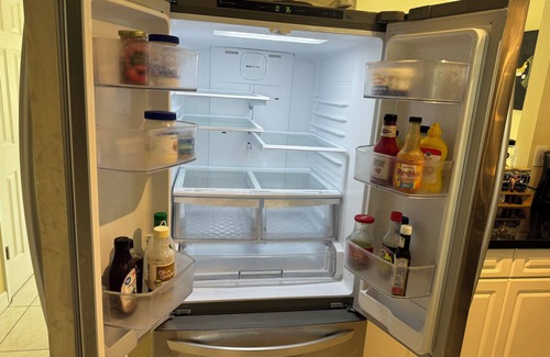 Prepare meals in the full kitchen with granite countertops and stainless steel appliances. Full Well-Equipped kitchen. You'll have all the Must-Have items for the Home Chef. Beyond Salt and Pepper you'll have spices, olive oil, sharp knives, coffees, teas, Pots and Pans for Your Cooking Style.