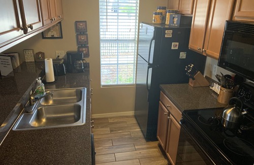 This is a fully furnished 2 Bed, 2 Bath condo. The Master Suite takes up the whole upstairs and is an open loft with a walk-in closet, vanity and private bath with walk-in shower. A queen size bed, two dressers to accommodate short stays or long. You have a beautiful view of the Lake from all rooms and are also overlooking the Pool. This spacious 967 Square foot of living space will provide you with a full working kitchen with over the stove microwave and new dishwasher. New fans throughout.