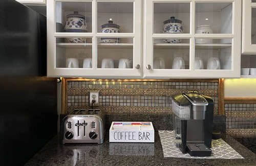 You'll find unique touches all around, from essential oil diffusers and a selection of oils to coffee bar with Keurig, coffee pods, creamers and a variety of teas. Two spacious bathrooms include all the essentials from shampoo, conditioner, soaps, makeup removing cloths and Q-tips to dental flossers and any other item you may have forgotten to pack. Your comfort is our primary goal. We want to make sure you feel completely at ease in our beloved lakefront property. Be our guest, please stay awhile.
