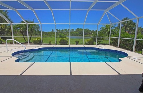 The heart of the home lies in the expansive kitchen, complete with modern appliances, a breakfast bar, and a dining area overlooking the pool and the tranquil lake beyond. Whip up culinary delights with ease, then savor your creations indoors or dine al fresco on the oversized lanai, where you can also bask in the sun, fire up the BBQ, and watch the wildlife in their natural habitat.
