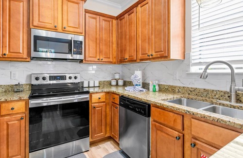 All of the bedrooms have their own TVs. Upstairs, an entertainment area awaits, complete with comfy seating, a TV, and access to the second-level balcony - a great space for older kids and catching up with a good novel. The stacked washer/dryer will ensure everyone looks their best during your stay, and the free WiFi will make it easy to research tomorrow's outdoor adventure or post your favorite memories to your social media.