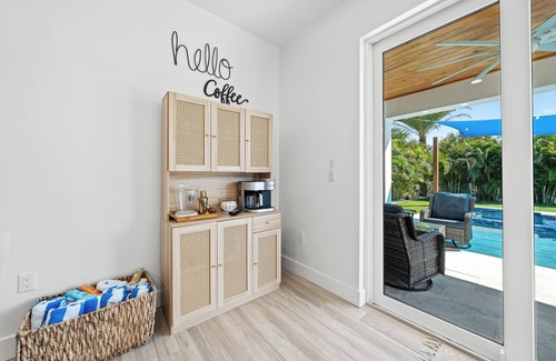 Welcome to Launch Pad, your cosmic Cocoa Beach getaway! With a heated pool, volleyball net, and spa, fun and relaxation are always in orbit. Challenge your crew to mini golf or corn hole, then relax on the patio or under the pergola with beach chairs for stargazing. This 5-bedroom, 4.5-bath townhome is just steps from the beach—no busy streets to cross! Plus, you're a short walk from Discovery Beach Resort with a lively outdoor tiki bar. Get ready for an out-of-this-world vacation!